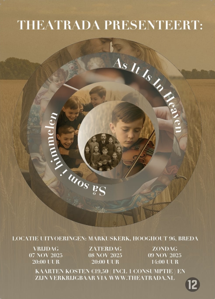 As It Is in Heaven, de nieuwe theatervoorstelling van Theatrada, wordt opgevoerd in de Markuskerk te Breda op 7, 8 en 9 november.